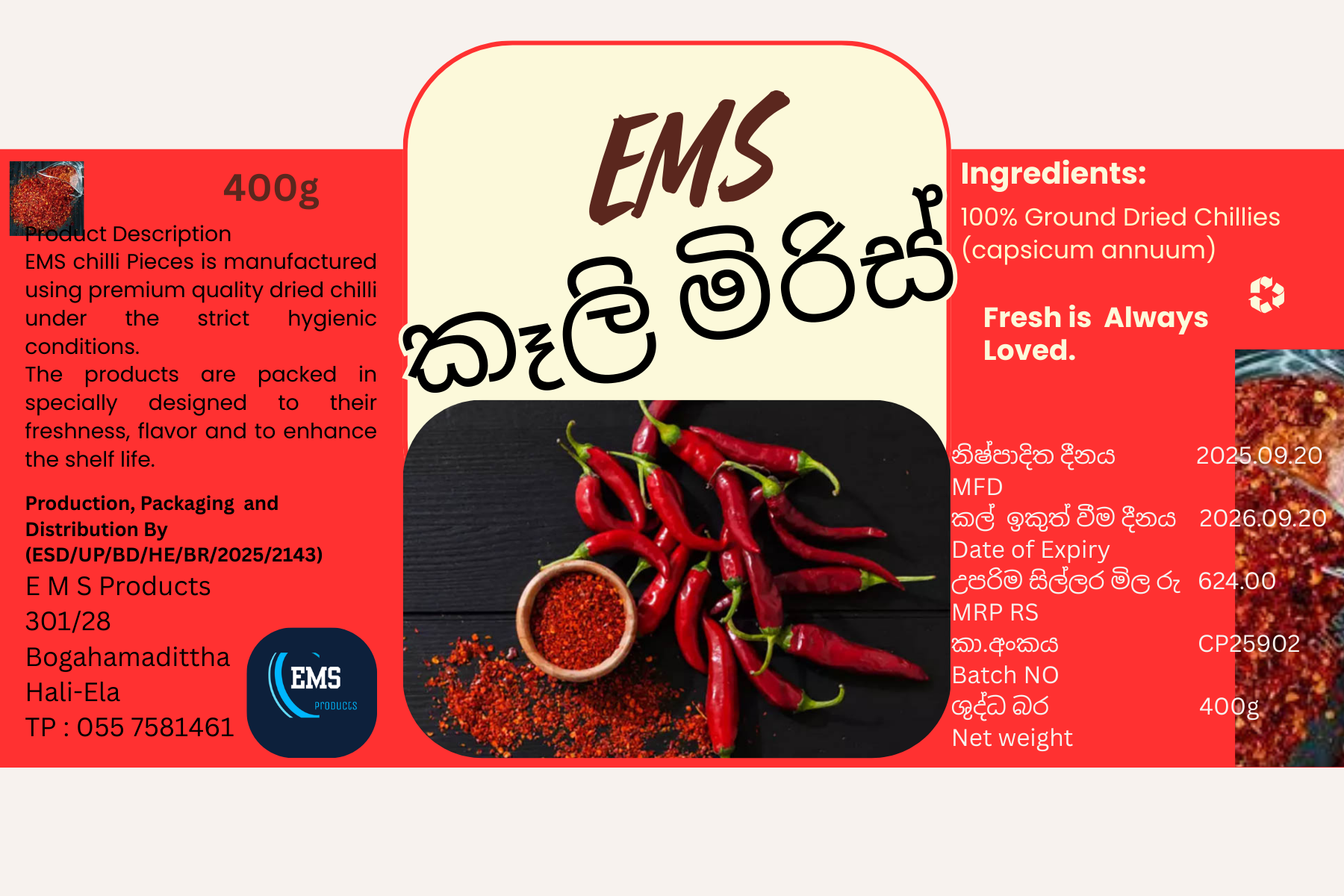 EMS Chilli Pieces is manufactured using premium quality dried chilli under the strict hygienic conditions.